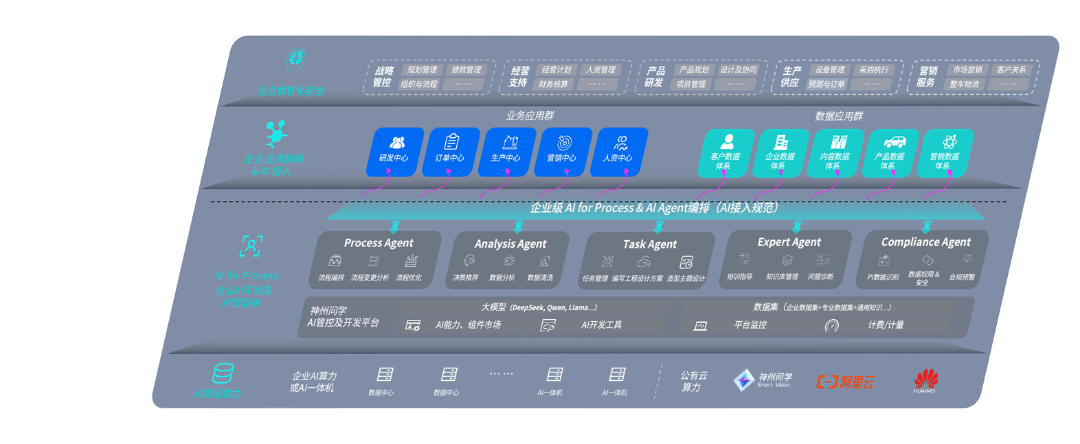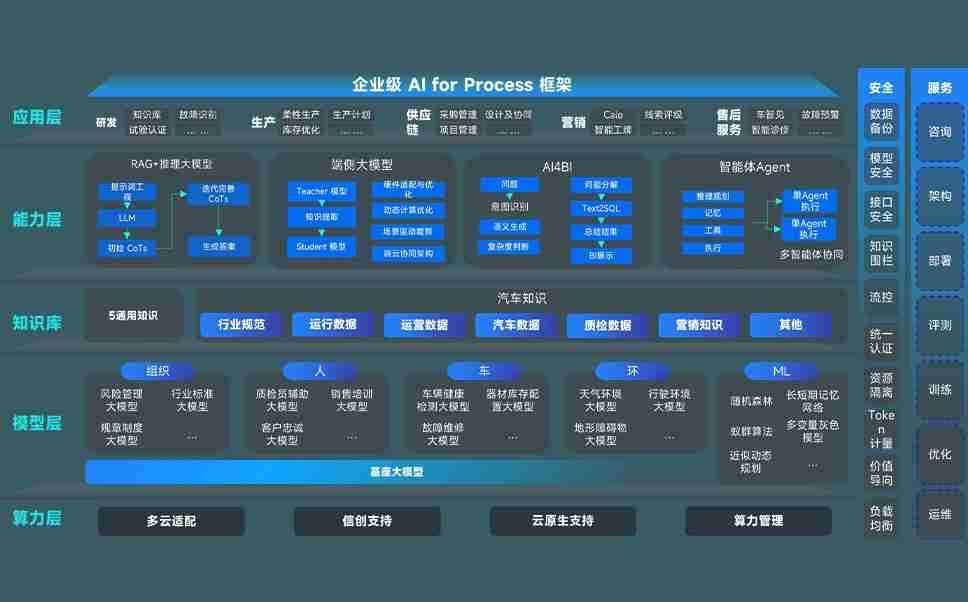 端到端的一站式AI工作空间深度融合了从企业战略规划到日常经营的全流程业务板块,,定向解决车企内部领域多、、部门多、、、、链条长、、、、场景碎片化等难题,,,支持车企快速构建以AI为核心的生产力写作体系,,实现任务执行与AI能力的无缝集成与交互